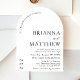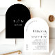 An elegant and stylish wedding invitation design featuring a modern arch layout in a sleek black and white minimalist theme. The invitation showcases clean lines and a sophisticated typography layout, using bold sans-serif fonts paired with subtle script accents. The arch serves as the centerpiece, with key wedding details such as the couple’s names and event date prominently displayed. The design emphasizes simplicity and refinement, using high contrast and negative space to create a timeless and contemporary look. Perfect for couples seeking a modern and chic aesthetic for their special day.