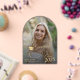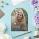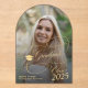 Elegant classic chic calligraphy script high school college university simple stylish gold acrylic arch shape graduation announcement with grad hat, custom photo, and text template.