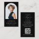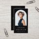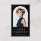 Modern, minimal, professional business cards or personal profile cards with your photo inside and arch shaped frame. Customisable name and title/company name on the front. On the back are customisable template fields for your logo, contact information and QR code. All colours are customisable in the design tool.