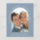 Chic budget-friendly dusty blue elopement announcement and reception invitation. The front features your wedding photo in an arch frame and "Happily Ever After Party" in elegant white typography. Under your photo, add your names, wedding date and location. On the reverse side, personalise your announcement and invitation, add your names in a signature-like script and input your wedding website address to create a scannable QR code for your guests to scan to RSVP online and obtain additional details.