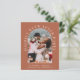 Chic budget-friendly terracotta elopement announcement and reception invitation. The front features your photo in an arch frame and "Happily Ever After Party" in elegant white typography. Under your photo, add your first names, wedding date and location. On the reverse side, personalise your announcement and invitation, add your names in a signature-like white script and input your wedding website address to create a scannable QR code for your guests to scan to RSVP online and obtain additional details.