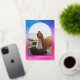 This modern holiday card features a single, vertical photo framed within a beautiful real foil arch. The background has a rich, painted texture in pink blue colours. Personalise this flat card with a custom greeting, script text, name, year and vertical photo on the front. Select real gold foil, silver foil or rose gold foil. Choose between a wide array of paper types. Select the rectangular shaped 5" x 7" card or add a dye cut border shape. Matching items are available. Perfect for a Christmas, holiday or wedding photo card to share with family and friends.
