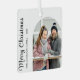 Modern Christmas ornament featuring a minimalist white background, a photo template and season's greetings 'merry christmas'. Personalize with your family name and year. Happy Holidays!