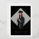 A modern minimalist graduation announcement photo card design featuring a minimalist arch tassel frame on a diamond shaped (mortarboard) photo, double sided card.