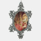 Annunciation angel in pink and gold colours.Italian late mediaeval masterpiece from Fra Beato Angelico ,Annunciation Angel Detail Italy ,and a bright 3D red ruby gem stone.