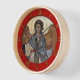 This religious-themed wall clock features a traditional Eastern Orthodox icon painting of the popular Archangel Gabriel painted in Byzantine style. Along with Archangel Michael, Archangel Gabriel is one of the most venerated angels by both of the oldest christian rites (the Greek Orthodox and the Roman Catholic). His name translates to 'God is my strength.'