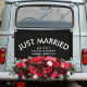 This modern "Just Married" design makes a fun addition to the couple's getaway car.