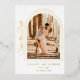 Elegant and timeless, this gold foil Save the Date invitation is designed to make a lasting first impression. A beautifully flowing “Save the Date” script runs vertically along the left side of your arched photo, adding a romantic and editorial touch. Your image is framed within a double gold foil arch, creating a striking focal point with luxurious dimension and shine.