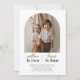 A modern joint Birthday invitation featuring your own photo in an arch shape with the name and ages of the friends or siblings, with the details underneath.