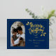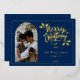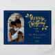 Classy, understated and elegant "Merry Christmas" and holly script text design featuring your arched photo and beautiful foil text and details on front with a corresponding faux gold tiny dot background on back.