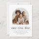 A modern joint Birthday invitation featuring your own photo in an arch shape and 3 sections for the name and age of each child.