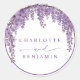 Add a romantic floral touch to your wedding favours, stationery, and decor with this elegant wisteria wedding sticker. Featuring lush purple wisteria vines cascading in a graceful arch, this design is perfect for garden, vineyard, and botanical weddings. Use these classic round stickers for favour bags, envelopes, seals, or custom decor to tie your theme together beautifully.