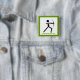 Archer with his bow black, green archery button that showcases a minimalist icon of a black silhouette of an archer and your text on white background with green border.