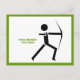Archer with his bow black, green archery custom horizontal postcard that showcases a minimalist icon of a black silhouette of an archer and your text on white background with green border. Personalise it and change text with monogram, name or your message.