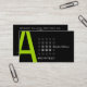 A modern business card for an Architect with a sleek black background and an original graphic design showcasing a large letter A and a square geometric grid. Customise the Initial to suit any profession and add company information.