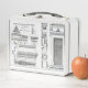 This is a standard metal lunchbox that appears to work just fine. We designed this box ourselves with an uploaded photo and custom text on the front and back. It looks absolutely beautiful except the front of the lunchbox is not centered like it shows in the photo. The print borders don't align with the inset flat part of the box where the preview photo online showed it perfectly centered in there. The back looks nice and centered though.