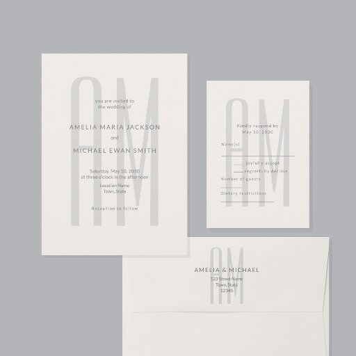 Elegant and refined, this Architectural Monogram Minimal Wedding Invitation is designed for modern city hall ceremonies, gallery venues, and contemporary celebrations. The oversized monogram creates a strong yet understated visual structure, allowing typography and white space to take center stage.