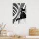 Make a striking statement with this captivating black and white art print, a masterful display of avant-garde fashion and architectural photography. This compelling profile portrait features a woman of enigmatic poise, adorned with sleek round sunglasses and a dramatic black caped ensemble, fastened with an ornate circular brooch. Her dark skin creates a mesmerising contrast against the backdrop of an abstract, curving modern architecture, with light and shadow playing across the lines. Her elegant black turban and long leather gloves complete a look of sophisticated mystery and futuristic chic. Leaning gracefully on a textured wall, this artwork embodies a confident and timeless presence. Perfect for modern living spaces, fashion studios, or any decor seeking a touch of unique elegance, bold artistry, and a truly unforgettable visual narrative.