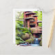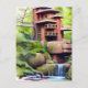 A F.L. Wright inspired prairie style architectural treehouse - AI generated watercolor digital art postcard.