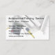 Architecture and construction planning business card design created with a lightly printed background image of architectural plans and tape measure in the background with a classic business card layout ready to customise online.