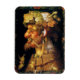 Arcimboldo Autumn magnet. Oil painting on canvas from 1573. Giuseppe Arcimboldo was one of the most unique and bizarre painters of the baroque period. Arcimboldo was famous for his incredibly detailed portraits arranged out of fruits, vegetables and other common foods. Autumn is the artist allegorical depiction of autumn feauturing fall foodstuffs like grapes, pumpkins, mushrooms, grains and apples. A great gift for fans of Arcimboldo, Surreal art, and Kitchen paintings.