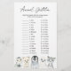 Winter Arctic animals themed baby shower animal gestation game card features a watercolor arctic animals illustration and watercolor greenery eucalyptus garland and elegant handwritten style font.