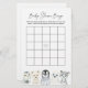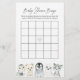 Little Arctic themed baby shower bingo game card features a watercolor arctic animals illustration and watercolor greenery eucalyptus garland and elegant handwritten style font.