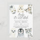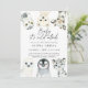 Invite your guest with our elegant and modern winter arctic animals baby shower invitation features greenery eucalyptus garland and watercolor arctic animals. Personalise with your baby shower details in simple layout and elegant handwritten style font.