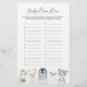 Arctic animals themed baby shower name race game card features a watercolor winter animals illustration and watercolor greenery eucalyptus garland and elegant handwritten style font.