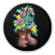 Exquisite designed door knob, pull for any DIY project you may have. Vibrant colours of yellow, black, purple and green featuring arctic wildflowers, and roses, delicately planted in a pair of mukluks.