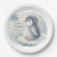 Baby Shower invitation featuring an adorable watercolor arctic baby penguin on floe. Winter Baby Shower. Arctic Penguin baby shower theme. Matching items available.