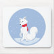 A white arctic fox wearing a red scarf sits in the snow. This design is available on multiple products including t-shirts, postcards, coffee mugs, keychains, and more! It can be customised or personalised by adding your own text or images!
