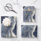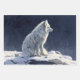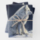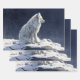 Nature inspired wrapping paper featuring a white arctic fox on a snowy ledge against a dark blue background. Perfect for furniture decoupage projects. Exquisite, classic oil painting charm.