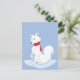 A white arctic fox wearing a red scarf sits in the snow. This design is available on multiple products including t-shirts, postcards, coffee mugs, keychains, and more! It can be customised or personalised by adding your own text or images!