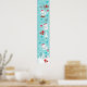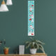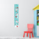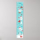 This adorable growth chart features a winter wonderland woodland with arctic foxes in santa hats, birds, snow, snowflakes and snow-capped trees. The background is a turquoise teal blue green.