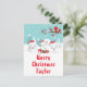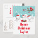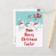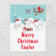 This cute and fun holiday card can be personalised with a name or title such as daughter, granddaughter, niece, friend etc. It features an adorable arctic fox family in a winter wonderland setting with snow capped trees and a red bird on a branch with holly. The foxes in Santa hats add a festive touch. In the background is a teal blue green sky and falling snowflakes. The text combines decorative and sans serif fonts for a stylish and modern look. This is perfect for Christmas.