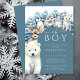 This cute winter baby shower invitation features arctic animal friends, including a polar bear, reindeer, penguin, seal, bunny, and wolf, with a backdrop of snowy trees. The invitation is set on an arched blue background with the words "Oh Boy!" in a playful font at the top. The date, time, and location of the baby shower are listed below in a tasteful font. The adorable arctic animal friends and wintery theme add a touch of whimsy and fun, and the overall design is perfect for celebrating the upcoming arrival of your little boy with your loved ones in a festive and heartwarming way.