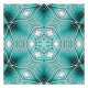 A striking turquoise and white kaleidoscopic design featuring intricate geometric patterns, sharp lines, and symmetrical star-like shapes. This bold and modern abstract artwork blends cool icy tones with dynamic fractal details, creating a visually captivating piece perfect for home décor, apparel, or accessories.