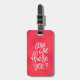 Pick a luggage tag with some pop! This bright, colourful and fun hand-lettering design reads "are we there yet" and has a spot on the back for name and contact info.