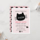 This cute "Are you kitten me right meow" girl baby shower invitation features a black cat face, fishbone, and pow on a light pink background framed by a white border. The reverse side features a pink background with black cat and fishbone patterns. Personalise for your needs.You can find more matching products at my store.