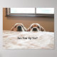 A familiar sight for many dog owners! This poster features two adorable golden retriever dogs peering over the side of the bed, waiting for their human to get up!
