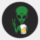 Area-51 Alien Beer Peace Sign Lazy Drinking Hallow Classic Round Sticker