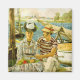 Argenteuil, 1875. Edouard Manet . Summer landscape in warm colors. A woman and a man are sitting on the pier. Behind them are yachts and boats. On the opposite bank there is a small town. There are light clouds in the blue sky. Reproduction of famous works of art images in the public domain.