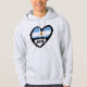 A cool, cartoon style heart design with the flag and the 3 letter country code of the country.