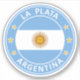 Badge of La Plata design with Flag of Argentina colours, rounded shape.
