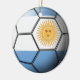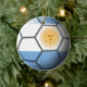 Flag of Argentina embossed across a soccer ball on a two-sided ceramic ornament.