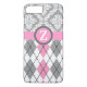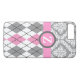 Argyle and damask pattern pink, grey monogram Case-Mate iPhone case