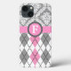 Argyle and damask pattern pink, grey monogram Case-Mate iPhone case