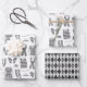 A wrapping paper sheet set built with the traditional argyle pattern in grey. Two sheets with argyle clothes illustrations and one with the argyle pattern.