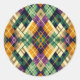 Argyle Mardi Gras yellow purple green Classic Round Sticker
